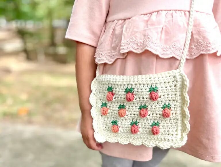 🦄 Prepárate para deslumbrarte con el bolso con diseño de fresitas en 3D a Crochet y descubre cómo puedes llevar contigo un pedacito de jardín encantado en cada paso que des.