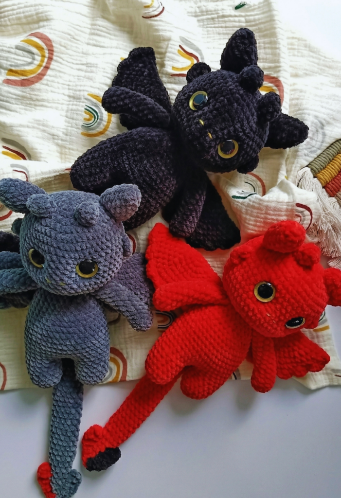 ¡Prepárate para entrenar a tus propios guardianes de peluche! Estos Dragones de Felpa Amigurumi son la máxima expresión de ternura y suavidad. Tejer uno es adictivo, pero tener el trío completo en diferentes colores es, simplemente, otro nivel de satisfacción. 🐉✨