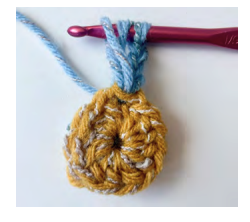 Notas: Cuando cambies de color al final de la ronda, pasa el nuevo color a través de 2 bucles en el gancho y continúa en el nuevo color.