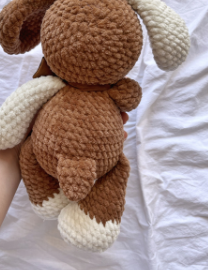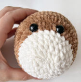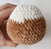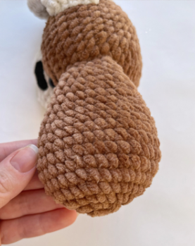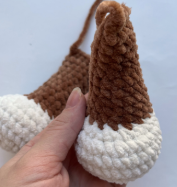 Dobla la pieza por la mitad y teje 5 pb uniendo ambos lados. Fija y corta el hilo.
