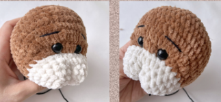 - Con hilo negro o marrón oscuro, realiza puntadas para hundir los ojos ligeramente en la cabeza.