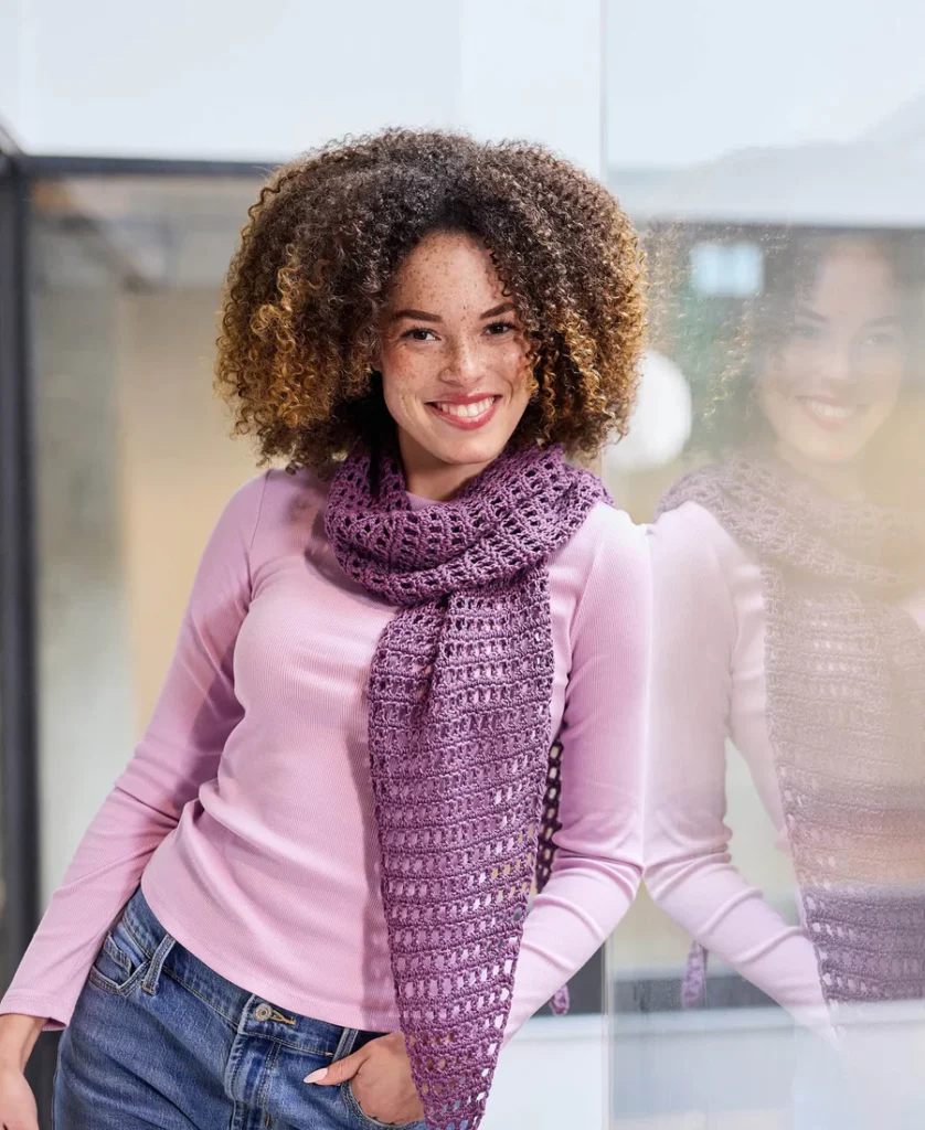 ¡Dale un toque de sofisticación a tu outfit con esta Bufanda Orquídea Urbana! 💜✨ Es el proyecto ideal si buscas algo que se vea complejo pero que se teja con una facilidad asombrosa. El punto maya es el secreto mejor guardado para lograr esa textura calada y moderna sin complicaciones.
