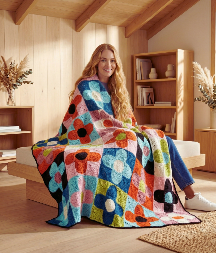 Imagina el despliegue de color que esta manta aportará a tu dormitorio o sala de estar 🛋️. Cada bloque es una flor única que, al unirse, crea un tapiz vibrante y acogedor. La satisfacción de terminar esta pieza es enorme, ya que te permite jugar con infinitas combinaciones cromáticas, haciendo que cada manta sea irrepetible 🎨. Es una pieza que evoca alegría y calidez, ideal para esos días en los que solo quieres refugiarte bajo un montón de flores tejidas con amor. ¡Te aseguro que cada pétalo que tejas te sacará una sonrisa! 🧶💖